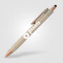 - Athos Balpen: Transparant gekleurde houder van gerecycled ABS (53%), aangevuld met een metalen clip en zilverkleurige details. Tijdloos, duurzaam en perfect voor jouw logo.